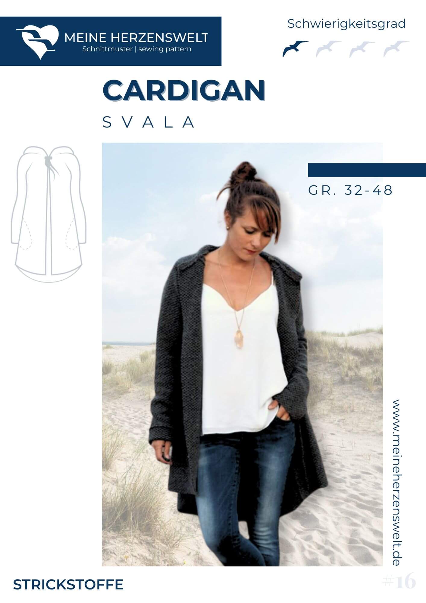Das Schnittmuster für den Cardigan ist inspiriert von der Leichtigkeit einer Schwalbe, die zwischen den Jahreszeiten hin- und herfliegt. Genau dann, wenn das Wetter unbeständig ist, ist Svala ideal: Ob frühlingshaft leicht oder als wärmender Mantel im Herbst – mit der richtigen Stoffwahl passt sich diese Damenstrickjacke deinem Stil und deiner Garderobe perfekt an.