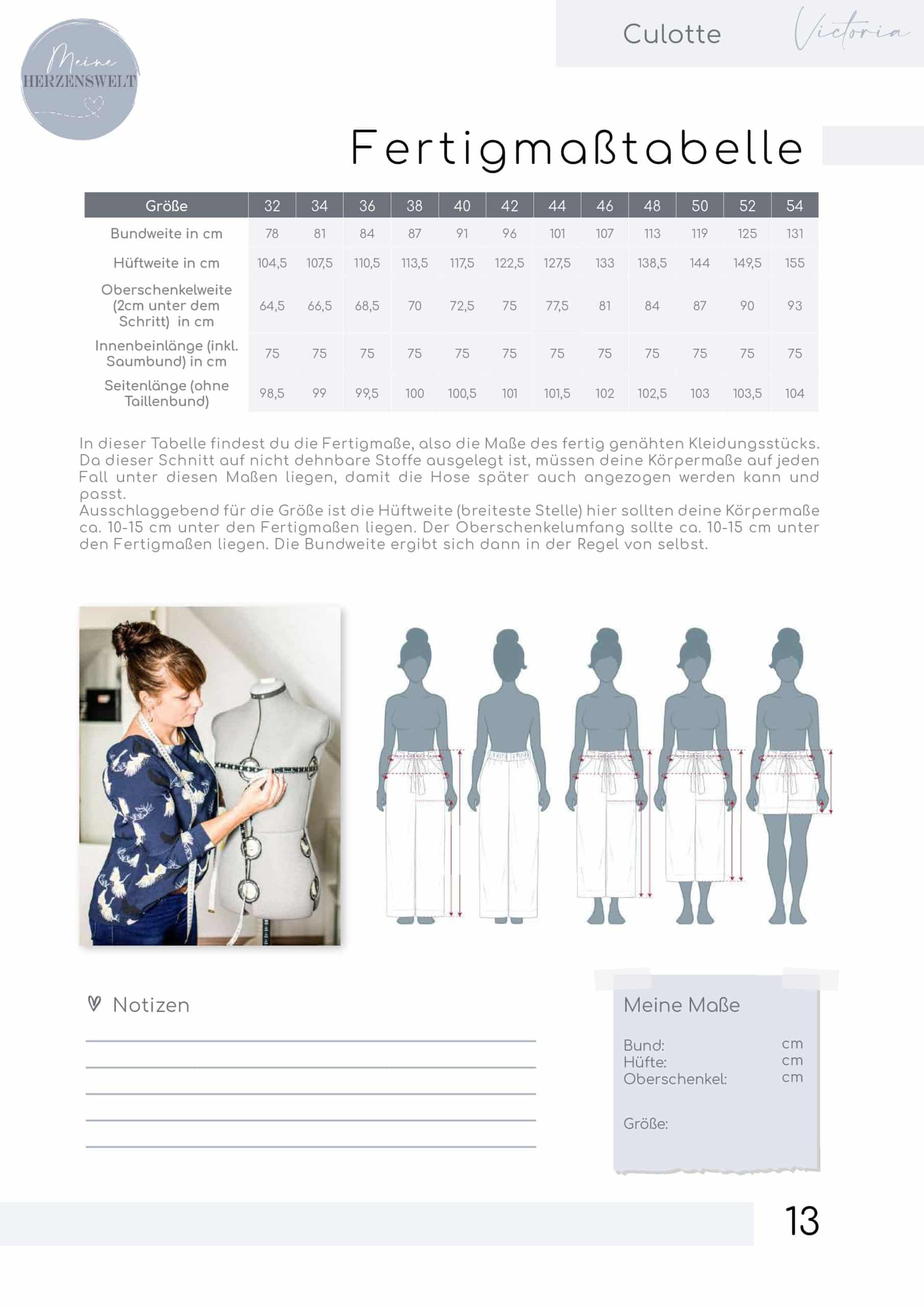 Schnellüberblick über das digitale Schnittmuster Culotte Victoria