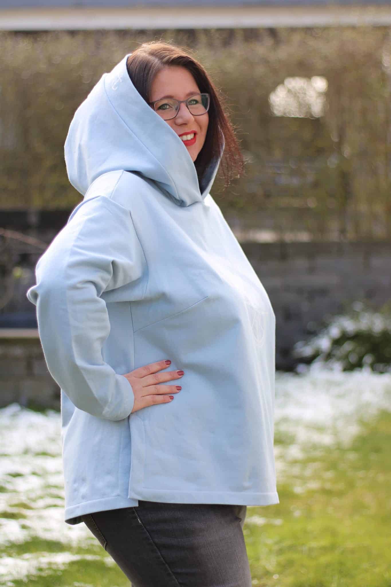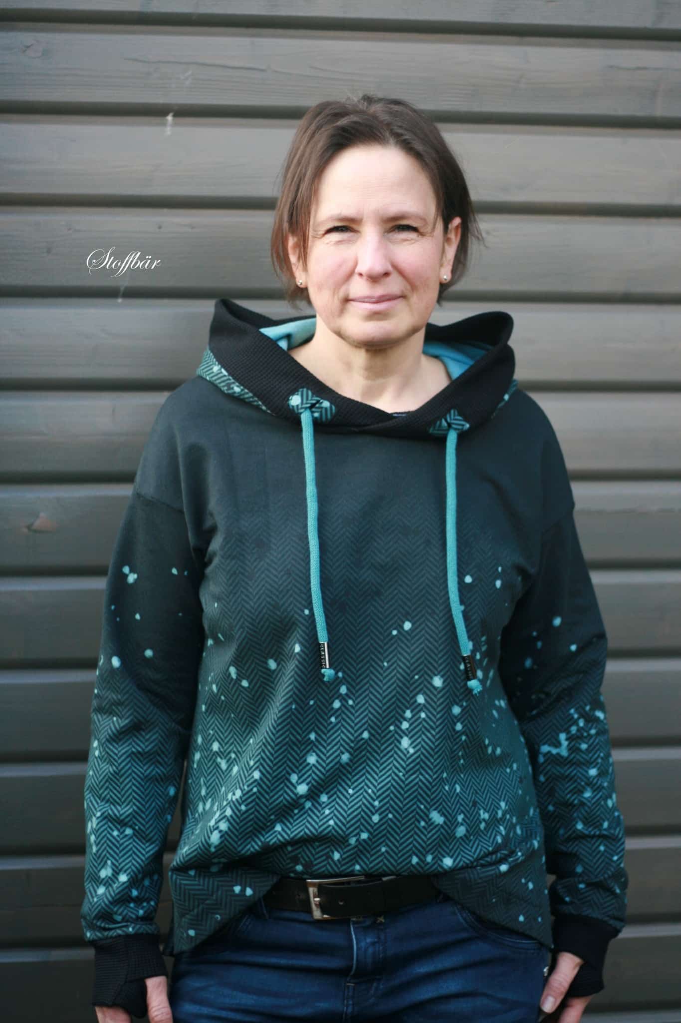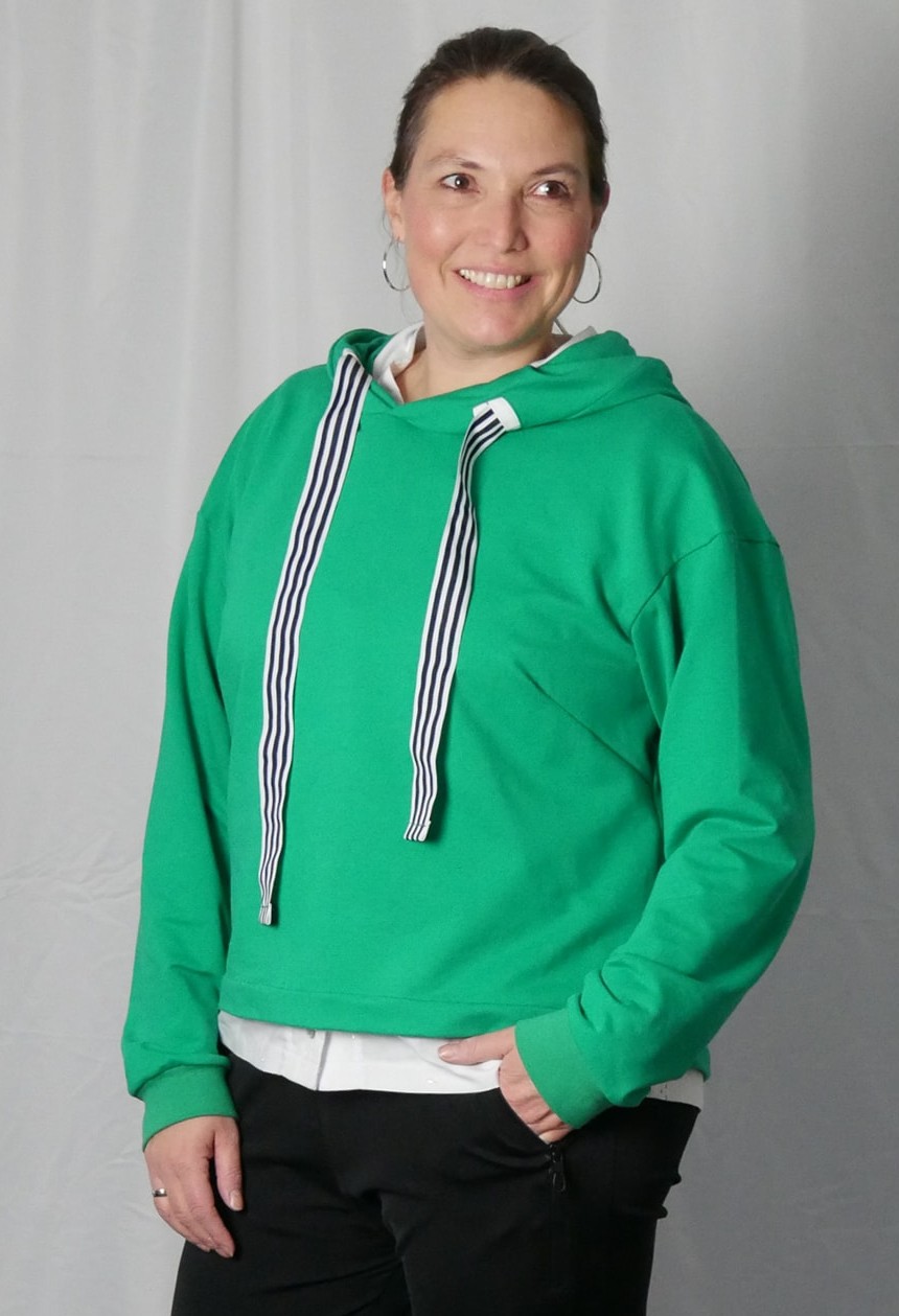 Als Stoffe für den Hoodie eignen sich dehnbare Stoffe wie z.B. Sweat (angeraut oder unangeraut), French Terry oder andere dehnbare Stoffe, die etwas dicker sind.
