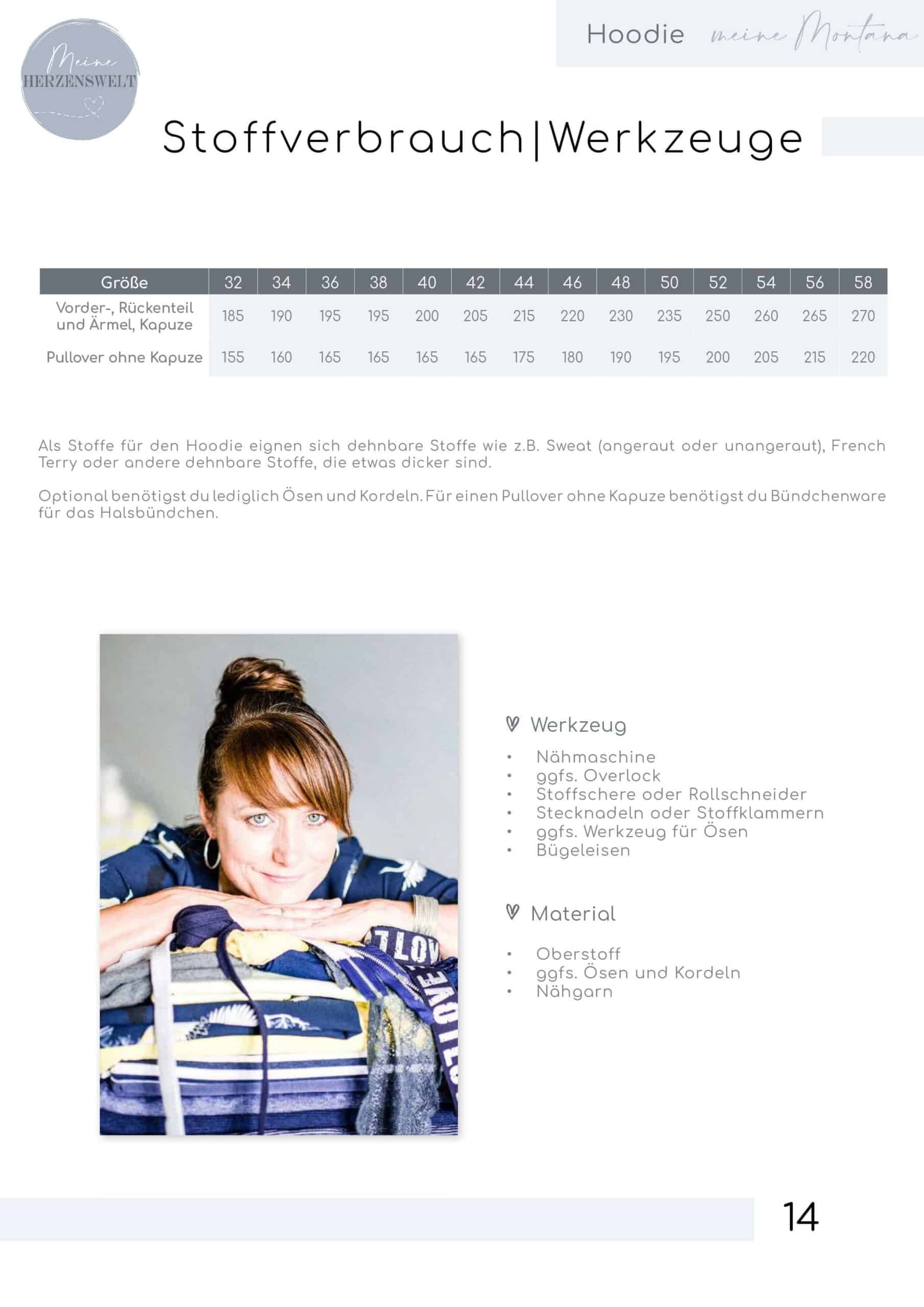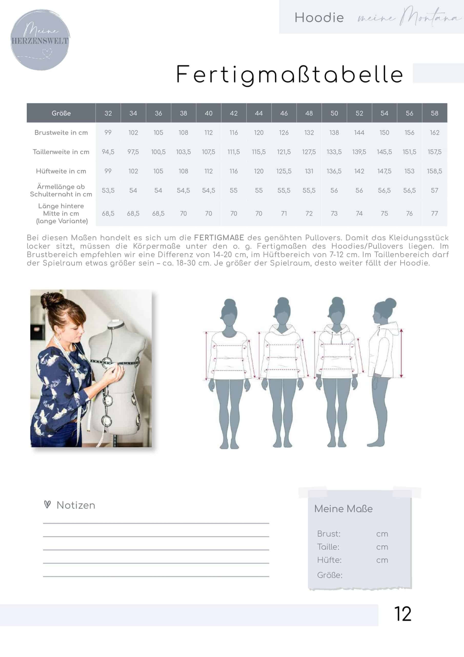 Das eBook meine Montana beinhaltet ein Schnittmuster in den Größen 32-58.
