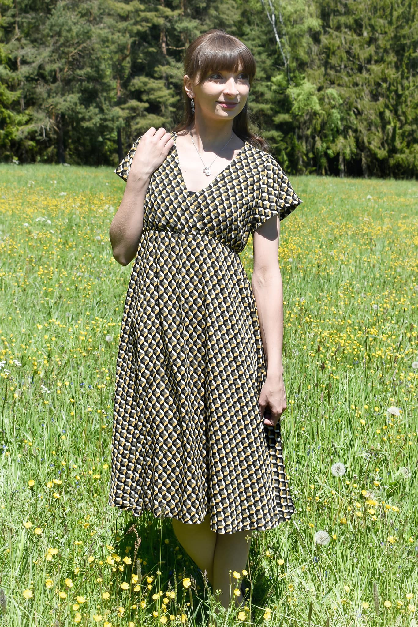 Das Kleid ist auf weich fallende, fließende, gewebte Stoffe ausgelegt wie zum Beispiel gewebte Viskose, Javanaise, Georgette, etc. Du kannst das Kleid aber auch aus Leinen oder ähnlichen Stoffen nähen.