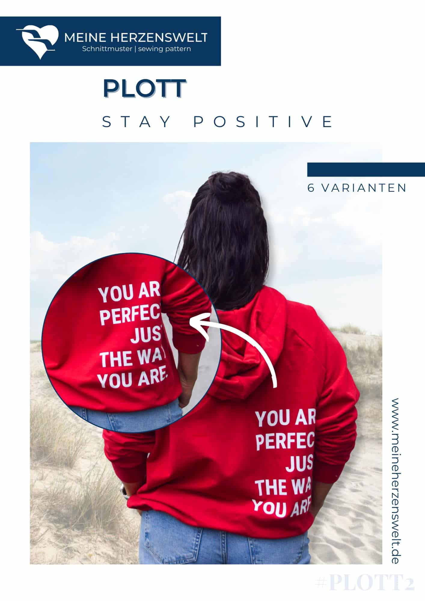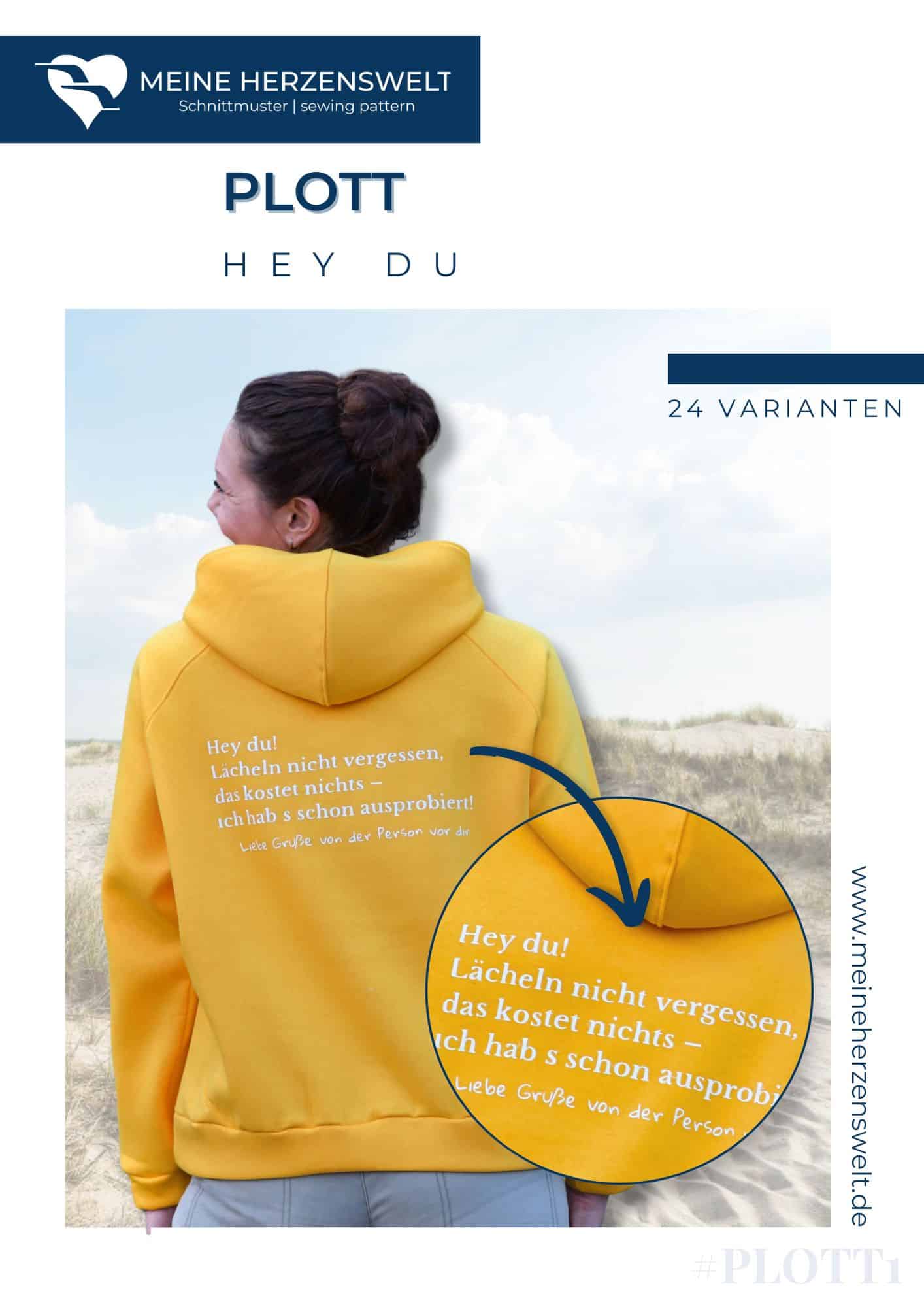 Zusätzlich erhältst du zwei Plottdateien (Hey Du & Stay positive), die von handelsüblichen Plottern (Cricut, Silhouette, Brother, etc.) geplottet und auf Stoff aufgebügelt werden können.