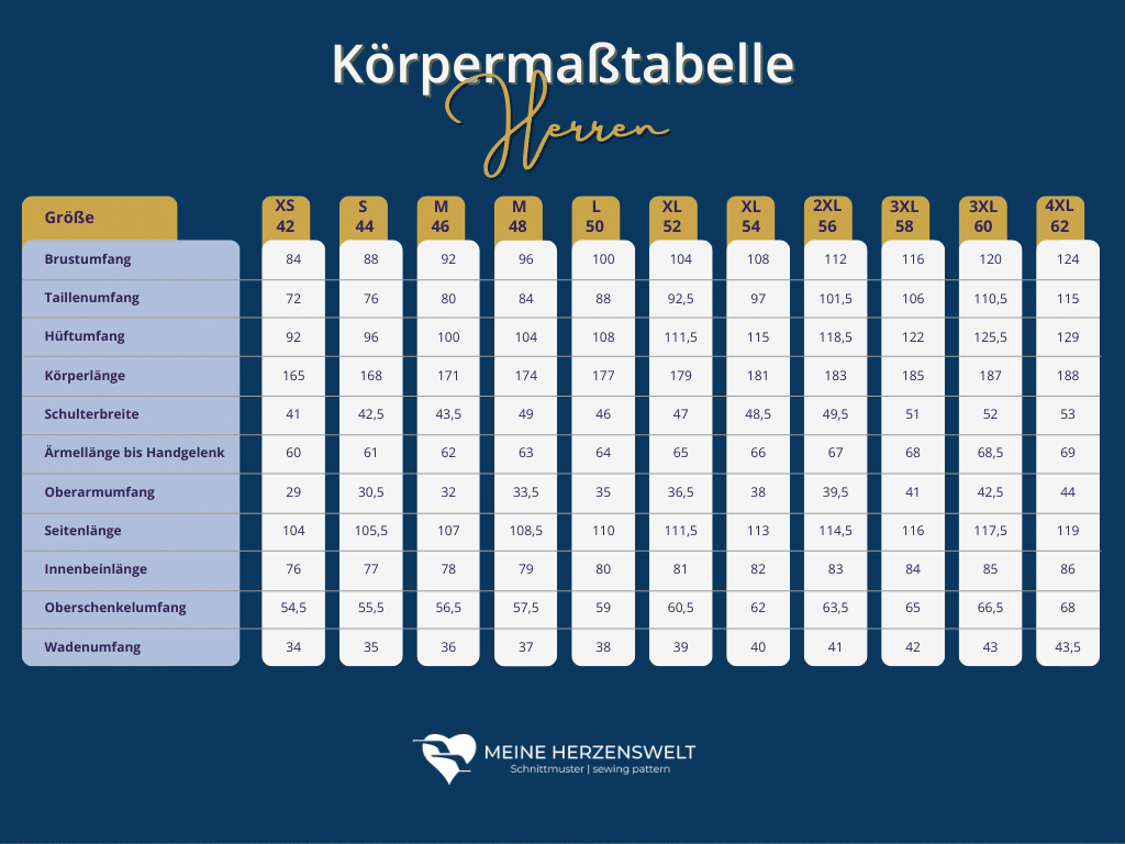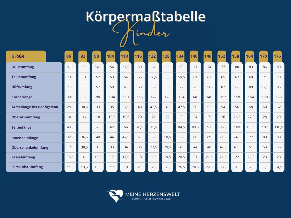 Finde deine perfekte Passform mit präzisen Maßtabellen für Schnittmuster – genau, einfach und für jeden Körper geeignet.