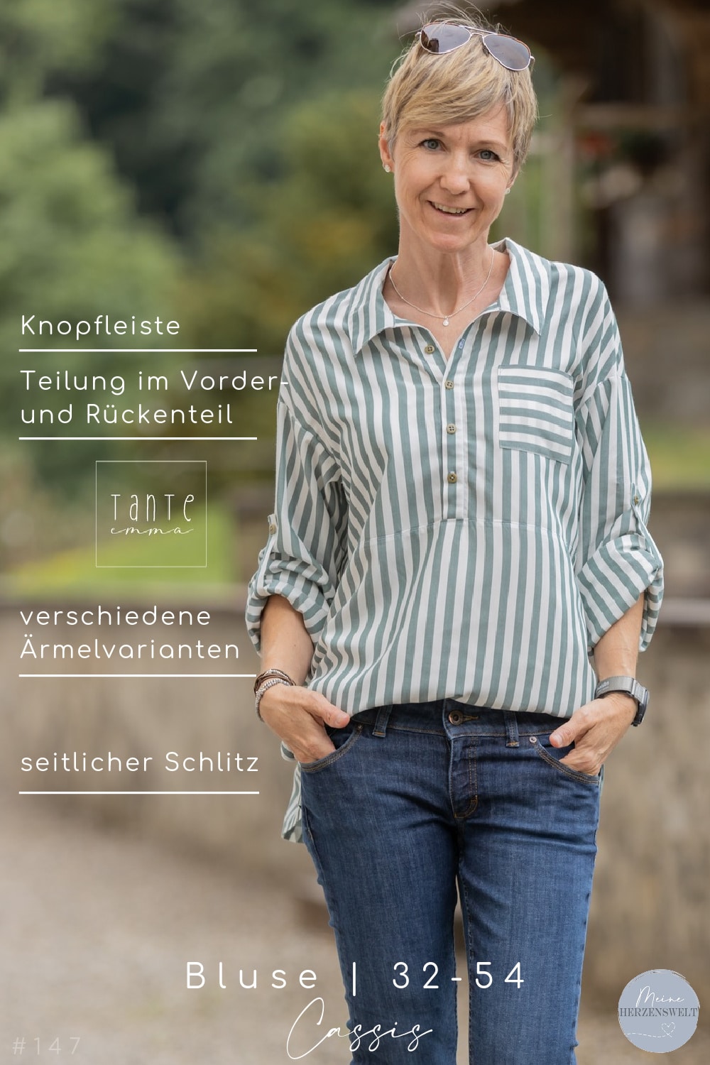 Die Oversizebluse Cassis ist in zwei Längen erhältlich und begeistert mit Rücken- und Vorderteil-Teilungen sowie einem seitlichen Schlitz, der für mehr Bewegungsfreiheit sorgt. Egal, ob für den Alltag oder besondere Anlässe – mit diesem Schnittmuster kreierst du deine ganz persönliche Lieblingsbluse!