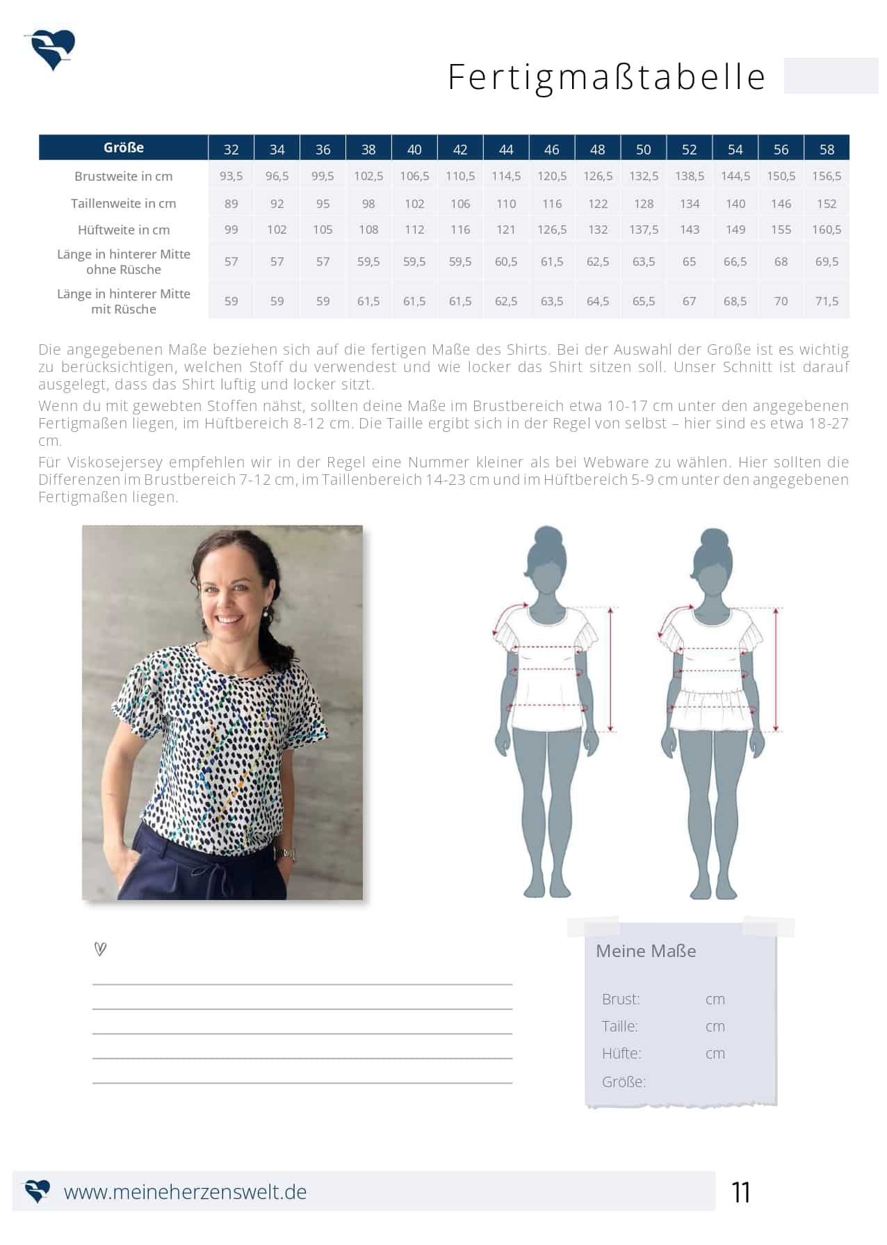 - Welche Stoffe eignen sich für das Schnittmuster? Das Schnittmuster ist für leichte, gewebte Stoffe wie Viskose, Viskoseleinen und andere Blusenstoffe ausgelegt. Auch Musselin und sogar Viskosejersey sind möglich, wobei letzterer eine Nummer kleiner genäht werden sollte.