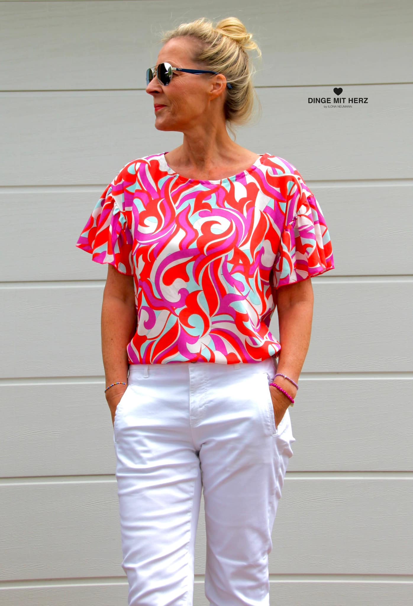 Wenn du dir eine kombinierbare Sommergarderobe nähen möchtest, ist das Rüschenshirt Alcudia ein absolutes Must-have. Dieses verspielte Shirt mit Rüschenärmeln ist Teil unseres SummerSewAlong und perfekt für sommerliche Tage. Für nähere Informationen und alle Details, schau dir unseren Blogbeitrag an.