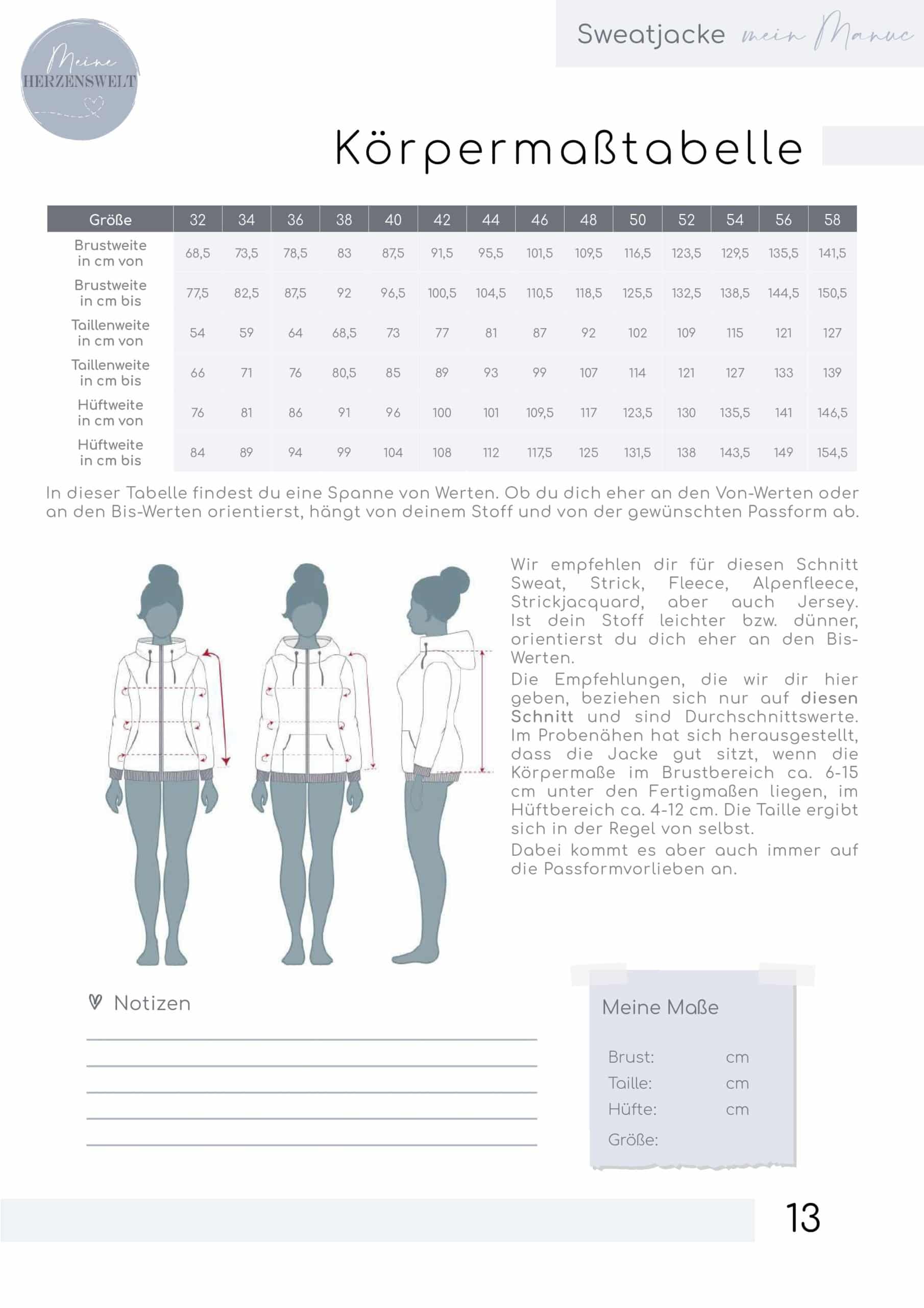 Mit unserem Schnittmuster Manuc bekommst du einen Schnitt für eine Sweatjacke.