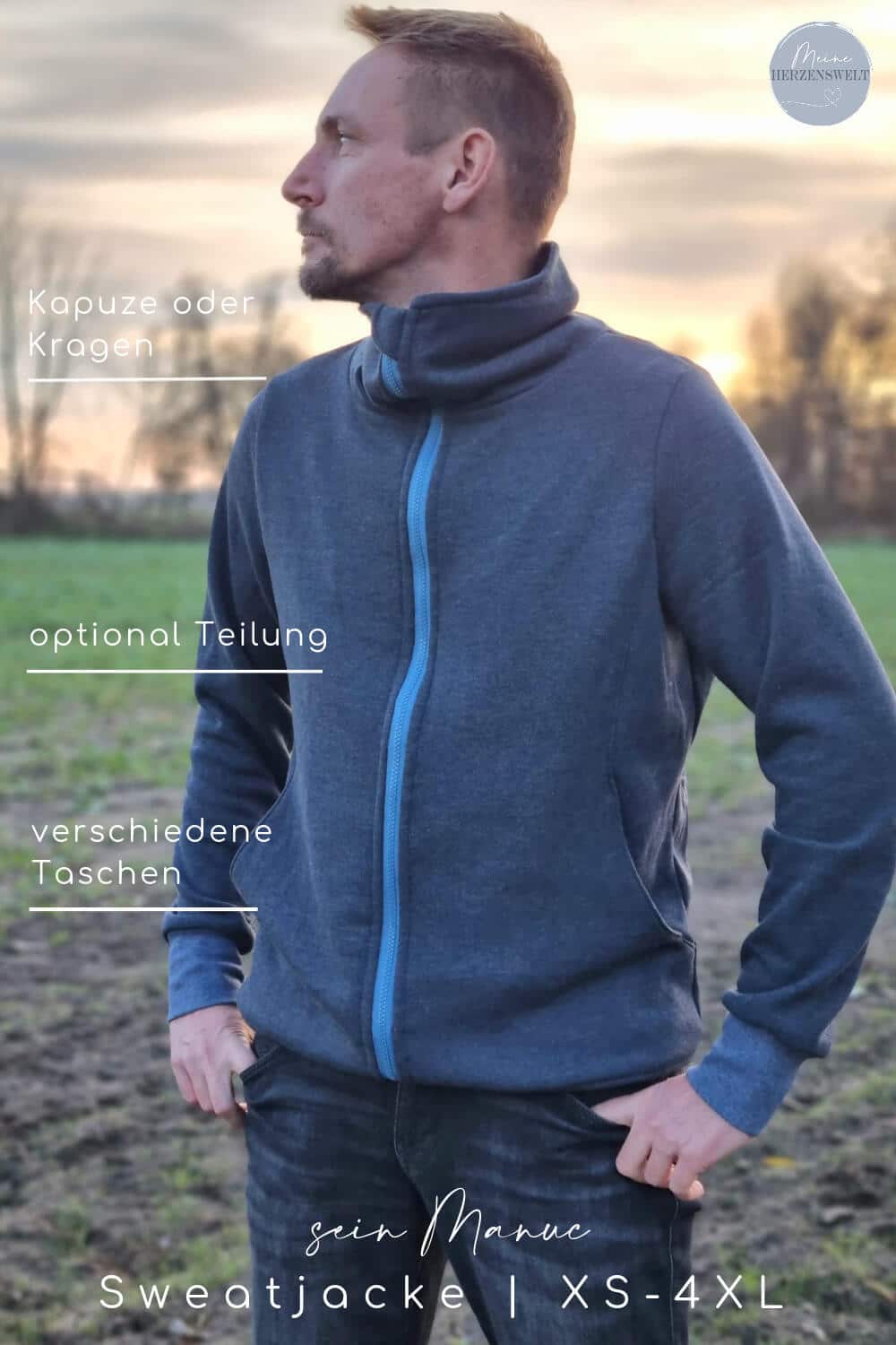Mit unserem Schnittmuster Manuc bekommst du einen Schnitt für eine Sweatjacke. Die Grundidee dieses Schnittmusters ist eine Sweatjacke mit seitlicher Teilung, versteckten Eingrifftaschen und wahlweise einer Kapuze oder einem Kragen.