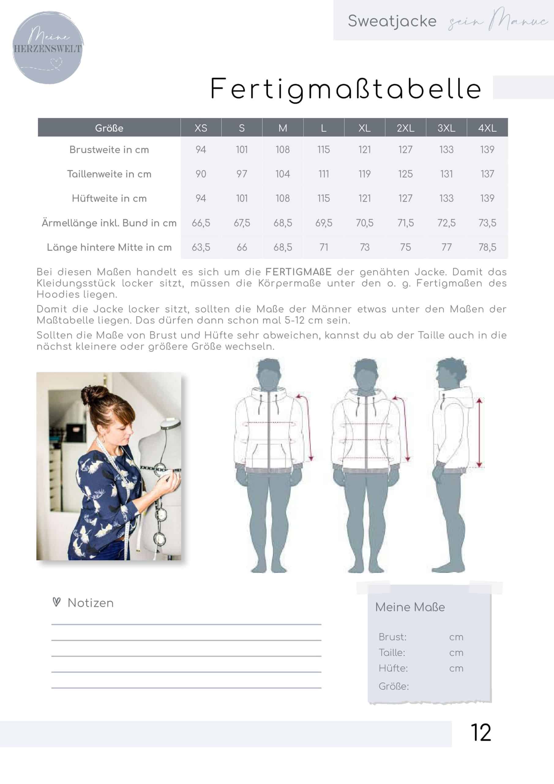 Der Schnitt Manuc beinhaltet ein Schnittmuster mit den Größen XS – 4XL.