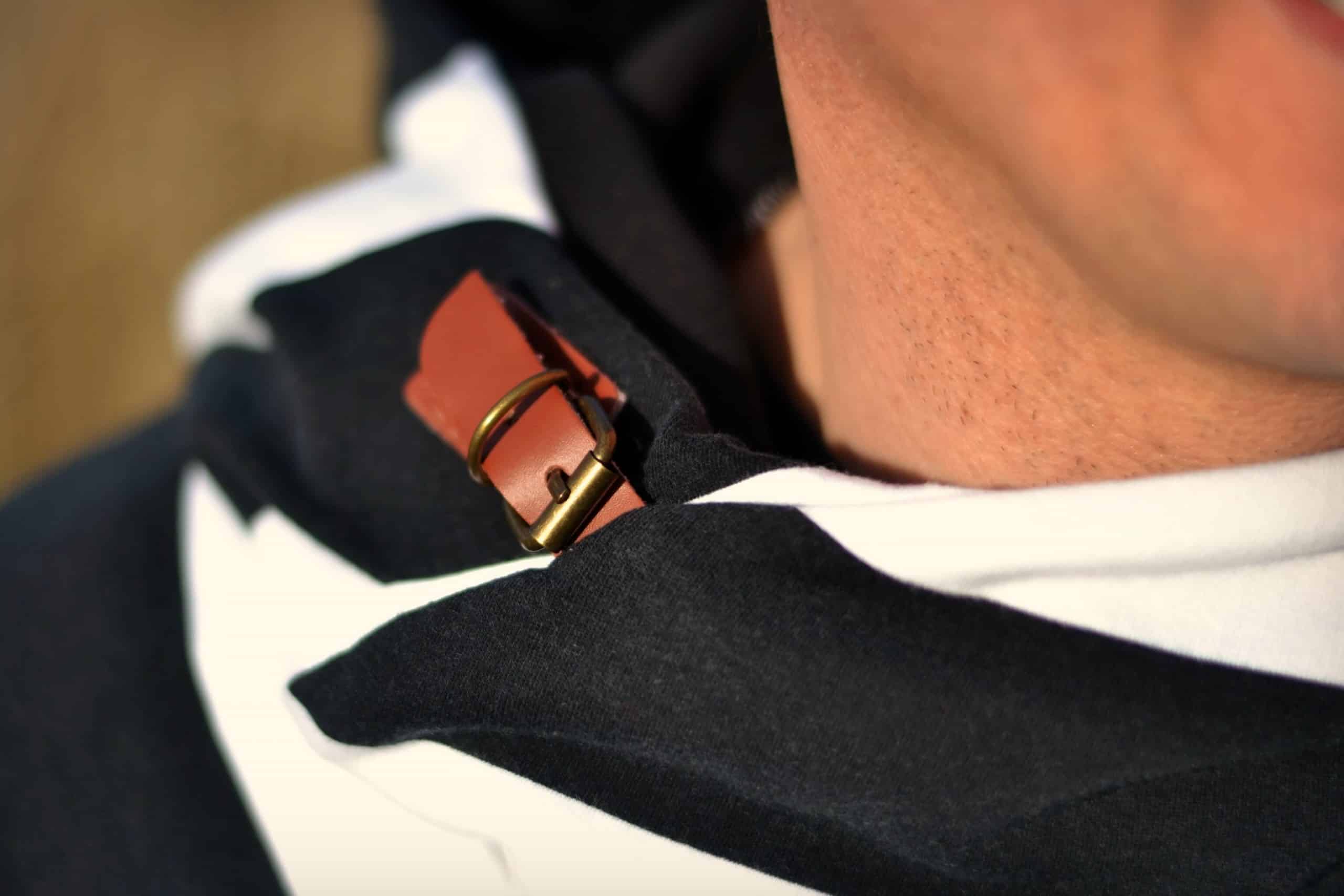Mit diesem Tutorial kannst du Hoodies und andere Kleidungsstücke mit Kapuze oder Kragen mit einer ganz einfachen Schnalle aufwerten. Wichtig ist, dass die Kapuze (der Kragen) gefüttert ist und vorne eine Überlappung hat.
